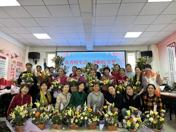 在花香四溢的氛围中,大家从插花聊到家常,从生活琐事聊到兴趣爱好。这种非正式的互助网络,有效缓解了妇女们日常生活中的压力,增强了社区邻里间的粘性,这正是社会工作中“构建社会支持系统”的具体实践。